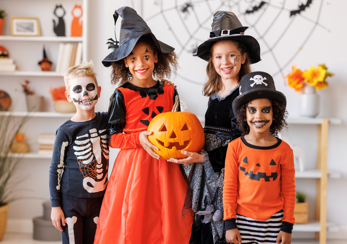 - Decorate costumes and trick-or-treating bags with reflective tape or stickers and, if possible, choose light-colored clothing.