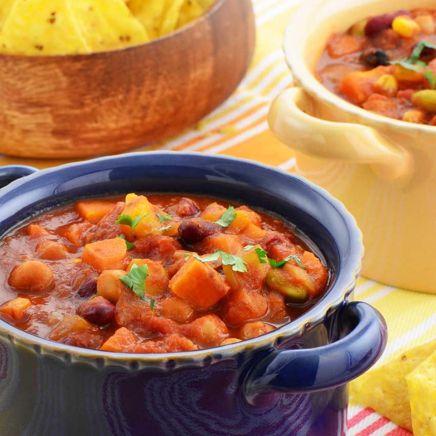 Chili is one of our favorite winter meals. Packed with protein and warm spices it’s a bowl full of satisfaction on a cold winter day. A delicious and healthy alternative to a meat base is to use sweet potatoes. You may already have all the ingredients for this version in your pantry. Just throw everything in and let the slow cooker do all the work.